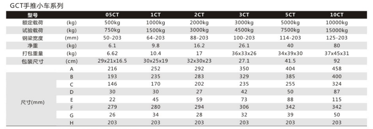 簡(jiǎn)介—— 凱榮集團生產(chǎn)的GCT型手推小車(chē)是一種結構簡(jiǎn)單.操作方便、輕小型調運配套起重機械,可與手拉葫蘆、環(huán)鏈電動(dòng)葫蘆等起重產(chǎn)品配套