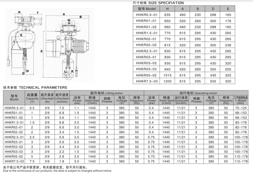 極限開(kāi)關(guān):重物吊上吊下都有極限開(kāi)關(guān)裝置,使電機自動(dòng)停止,以防止鏈條超出,確保安全。
