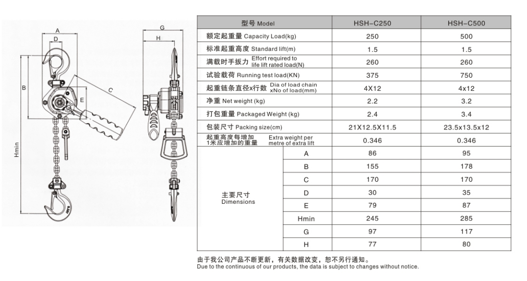 該葫蘆是凱榮品牌里最小最輕的手扳葫蘆。