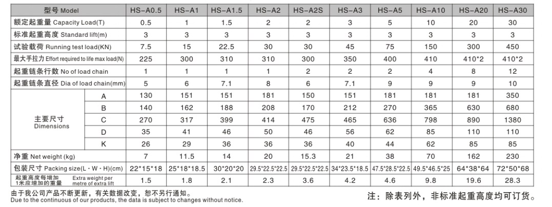 簡(jiǎn)介—— 1、開(kāi)放式框架設計,易清潔。2、可選配限載器。3、自動(dòng)雙棘爪剎車(chē)系統。4、標準配置高強度合金鋼起重鏈條和電鍍鋅手拉鏈條。